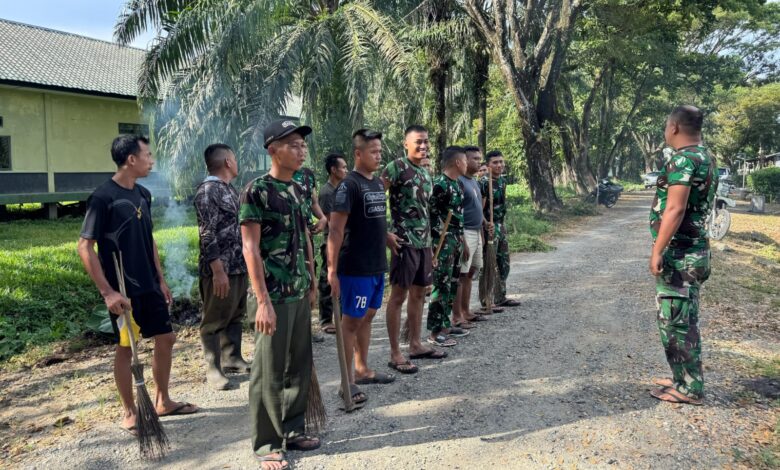 Aceh Barat || Koranprogresif.id, Menjelang cuti Lebaran 1446 H/2025, warga asrama Korem 012/TU melaksanakan kegiatan kerja bakti pembersihan lingkungan di Asrama Korem 012/TU, Desa Alue Peunyaring, Kecamatan Meureubo, Kabupaten Aceh Barat, Senin (24/3).