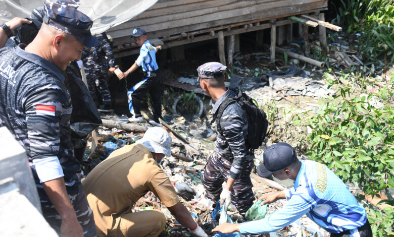Jelang HUT TNI AL Ke-79 Lanal TBA Bersih-Bersih Sungai