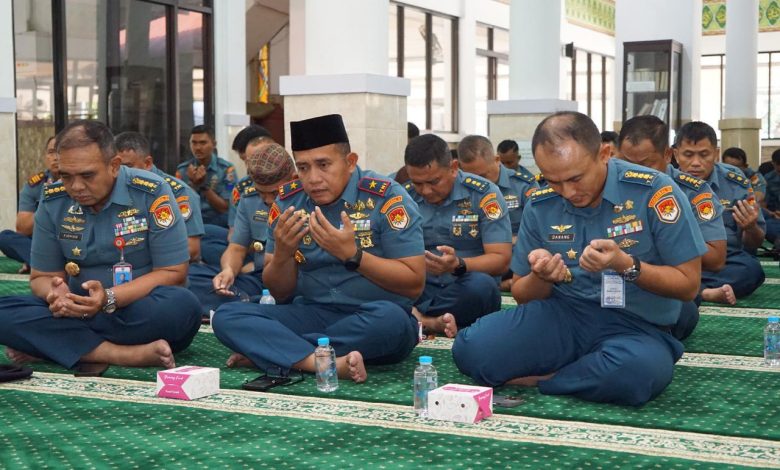 Komandan Komando Daerah Angkatan Laut (Kodaeral) III, Laksamana Muda TNI Uki Prasetia, S.T., M.M. yang diwakili oleh Wadan Kodaeral III, Brigadir Jenderal TNI (Mar) Dian Suryansyah, S.T., M.Tr.Hanla, M.M. menggelar doa bersama di Masjid Miftahul Jannah, Makodaeral III, Jakarta Utara, Kamis (27/11).