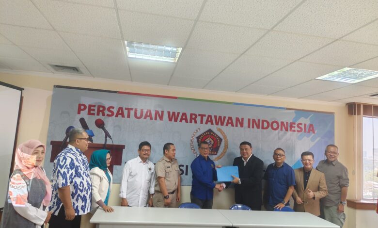 PENILAIAN-Ketua PWI Jaya, Kesit Budi Handoyo menerima hasil penjurian dari ketua dewan juri, Aat Surya Safaat disaksikan Kepala Bidang Komunikasi Publik Diskominfotik DKI Jakarta, Komarudin. (Foto. Ist).
