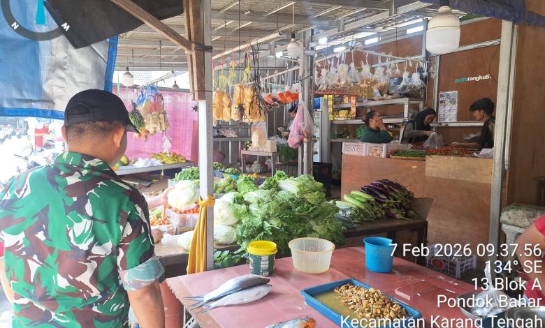 Tangerang – Dalam rangka memastikan stabilitas harga dan ketersediaan bahan pokok seperti cabe, bawang dan bahan pokok menjelang Ramadhan, Babinsa Koramil 04/Ciledug Kodim 0506/Tgr turun langsung untuk mengecek harga Sembako di pasar tradisional Kelurahan Pondok Bahar Kecanatan Karang Tengah Kota Tangerang, Sabtu (07/02/2026).
