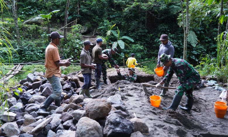 BLITAR || Koranprogresif.id – Program TNI Manunggal Membangun Desa (TMMD) ke-127 Kodim 0808/Blitar yang dilaksanakan di Desa Krisik, Kecamatan Gandusari, Kabupaten Blitar, menjadikan pembangunan jembatan sebagai salah satu sasaran pokok.