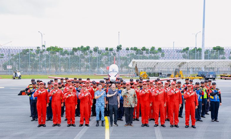 Dalam kesempatan tersebut, Perdana Menteri Singapura meninjau secara langsung kesiapan para penerbang dan ground crew Jupiter Aerobatic Team menjelang pelaksanaan Public Day 1 Singapore Airshow 2026.