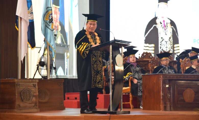 Ia mengatakan kepada seluruh wisudawan bahwa saat ini para wisudawan akan memasuki fase yang baru baik itu di masyarakat maupun lingkungan kerja. “Menyertai gelar yang baru tersebut, Saudara kini mengemban tanggung jawab yang lebih tinggi dari pada sebelumnya, dalam memberikan sumbangsih kepada masyarakat, bangsa dan negara Indonesia”, ucapnya.