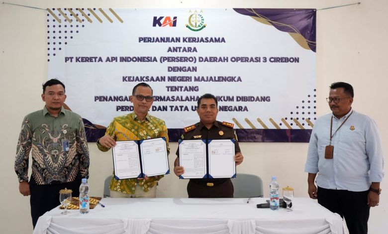 CIREBON – Koranprogresif.id – Guna optimalisasi penanganan permasalahan hukum di Wilayah Daop 3 Cirebon, KAI Daop 3 Cirebon melaksanakan penandatanganan Perjanjian Kerja Sama dengan Kejaksaan Negeri Kabupaten Majalengka pada Selasa (14/10).