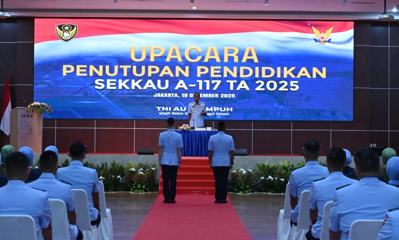 Jakarta || Panglima Kodau I Marsda TNI Muzafar, S.Sos., M.M., yang diwakili Kepala Kelompok Staf Ahli (Kapoksahli) Kodau I Marsma TNI Moch. Dadan Gunawan, S.T., M.M., CHRMP., turut menghadiri penutupan Sekkau A-117, oleh Komandan Kodiklat AU (Dankodiklatau) Marsekal Madya TNI Dr. T.B.H. Age Wiraksoni, S.I.P., M.A., bertempat di Gedung Pramanala Sekkau, Halim Perdanakusuma Jakarta Timur, Jumat (15/12/25).