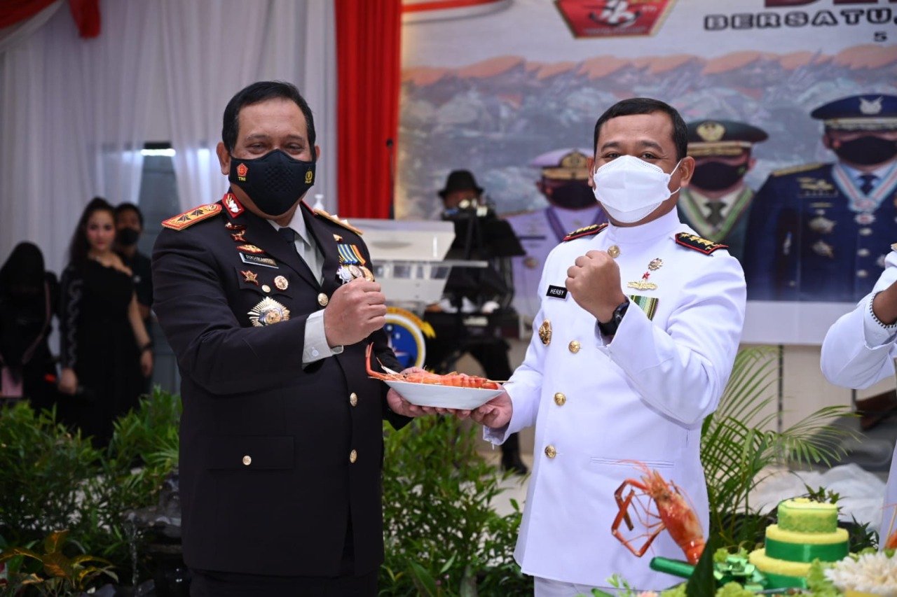 Sebagai bentuk sinergitas TNI-POLRI, pada kesempatan tersebut, Kapolda Kalsel memberikan potongan tumpeng dan mengucapkan selamat Ulang Tahun TNI yang ke-76 kepada Danlanal Banjarmasin, Kolonel Laut (P) Herbiyantoko, M.Tr. Hanla. dan Jajaran TNI lainnya.