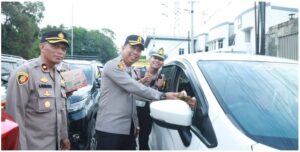 TINJAU-Kapolres Sukabumi, AKBP DR. Samian menyapa Pengemudi Mobil saat membuka Tol Bocimi tahap 2 Cigombong – Parungkuda. (Foto Ist).