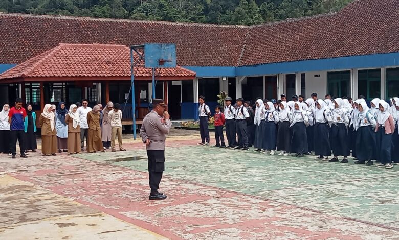 Kapolsek Sukanagara Melaksanakan Patroli Keamanan Sekolah dan Edukasi Kepada Pelajar di SMPN 1 Sukanagara