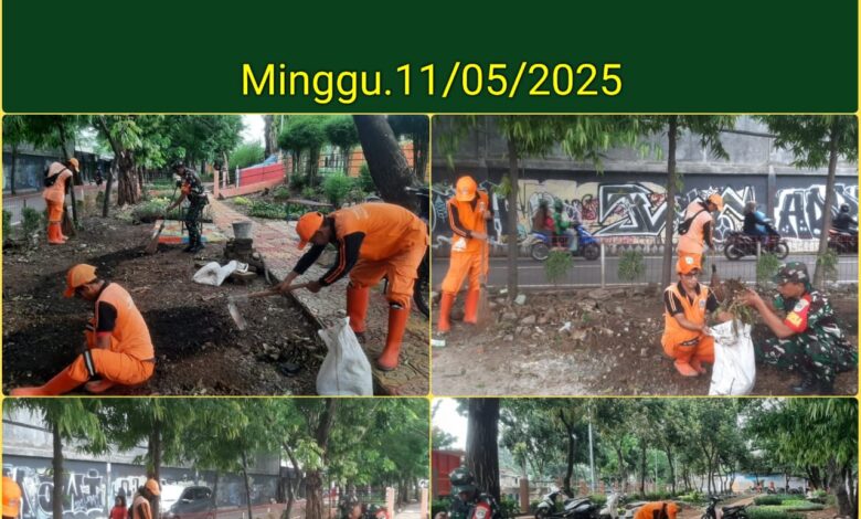 Jakarta || Koranprogresif.id, Ciptakan lingkungan bersih dan sehat, Babinsa Koramil 07/KB Kodim 0503/JB Serka Yulianto melaksanakan Karya bakti pembersihan lingkungan di Jl. Kembangan Raya Rt. 4/03 Kel.Kembangan Utara Kec. Kembangan Jakarta Barat. Minggu (11/5/2025)