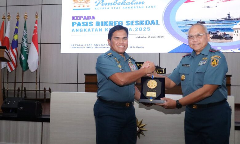 Jakarta || Kpranprogresif.id, 2 Juni 2025.Kepala Staf Angkatan Laut (Kasal) Laksamana TNI Dr. Muhammad Ali, S.E., M.M., M.Tr.Opsla. memberikan pembekalan akhir kepada Perwira Siswa (Pasis) Pendidikan Reguler (Dikreg) Seskoal angkatan ke-63 TA 2025 bertempat di kelas gabungan gedung Samadikun Seskoal, Cipulir, Kebayoran Lama, Jakarta Selatan, Senin (2/6/25).