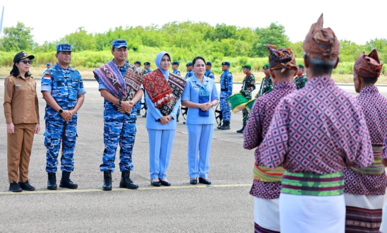 Kedatangan Kasau dan Ketum PIA Ardhya Garini beserta rombongan di Lanud El Tari disambut dengan jajar kehormatan dilanjutkan pengalungan kain tenun kepada Kasau oleh Komandan Lanud El Tari Marsma TNI Djoko Hadipurwanto, S.E., M.M. dan penyerahan hand bouquet kepada Ketum dari Ketua PIA Ardhya Garini Cabang 14/D.II Ny. Nila Djoko Hadipurwanto.