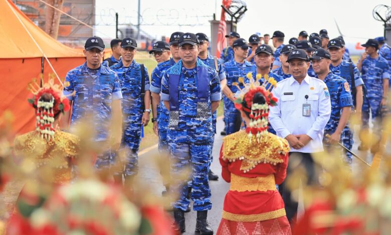Sebelumnya, kedatangan Kasau beserta rombongan disambut jajar kehormatan dan pengalungan kain serta tarian pemyambutan. Selanjutnya, Kasau menerima paparan dari Pangkoopsud I Marsda TNI Muzafar, S.Sos., M.M., selaku Direktur Latihan.