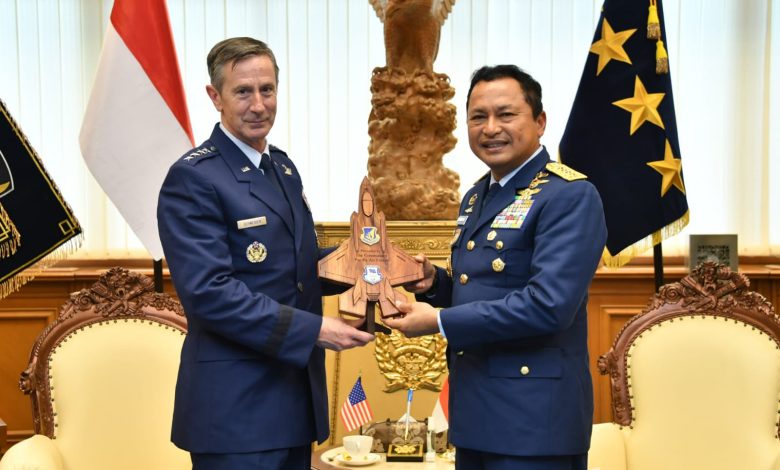 Cilangkap || Kepala Staf Angkatan Udara (Kasau) Marsekal TNI M. Tonny Harjono, S.E., M.M., menerima kunjungan kehormatan Commander Pacific Air Forces (COMPACAF) General Kevin B. Schneider di Mabesau, Cilangkap, Jakarta Timur, Senin (17/11/2025).