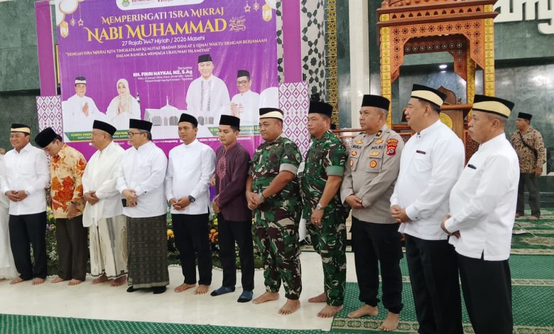 Tigaraksa – Komitmen menjaga kemanunggalan TNI dengan rakyat kembali ditunjukkan oleh jajaran Kodim 0510/Tigaraksa. Mewakili Dandim 0510/Tigaraksa, Kasdim Mayor Inf Tubagus Halim menghadiri sekaligus memonitor langsung jalannya Peringatan Isra Mi’raj Nabi Muhammad SAW 1447 H yang digelar Pemerintah Kabupaten Tangerang di Masjid Agung Al-Amjad, Rabu (21/1/2026).
