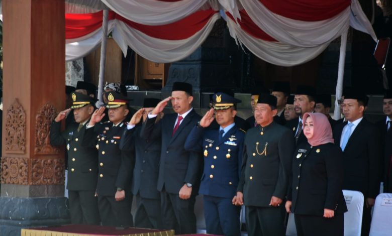 PONOROGO || Koranprogresif.id – Kasdim 0802/Ponorogo, Mayor Inf Agus Budi C, mewakili Komandan Kodim 0802/Ponorogo, Letkol Inf Dwi Soerjono menghadiri Upacara Peringatan Hari Jadi ke-80 Provinsi Jawa Timur (Jatim) tahun 2025, Minggu (12/10/2025).
