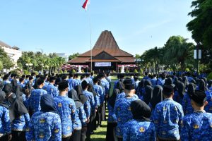 Upacara yang digelar di halaman Pendopo Kabupaten Ponorogo jl. Aloon Aloon Utara, Kelurahan Mangkujayan, Kecamatan / Kabupaten Ponorogo dengan penanggung jawab kegiatan Bupati Ponorogo, H. Sugiri Sancoko, S.E, M.M, tersebut dihadiri sekitar 200 orang undangan.