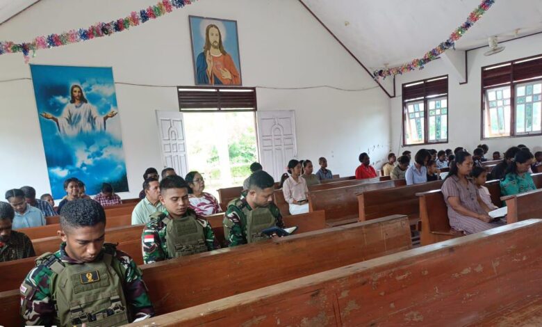 Kebersamaan di Rumah Tuhan, Prajurit Kala Hitam Beribadah di Perbatasan Papua
