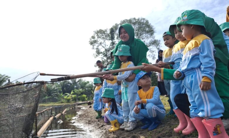Dalam kunjungan ini, anak-anak PAUD berkesempatan untuk memanen tanaman terong, jagung, menjala ikan, dan memberi pakan sapi. Kegiatan langsung di lapangan ini membuat keceriaan tampak di wajah mereka, sekaligus memperkenalkan mereka pada lingkungan alam dan dunia pertanian sejak dini.