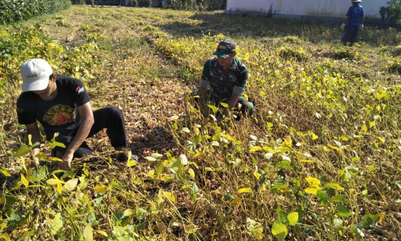 Kedelai Warga Sudah Tua, Babinsa Kodim 0802/Ponorogo Bantu Panen