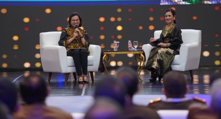JAKARTA || Koranprogresif.id – Hadir sebagai narasumber dalam Rapat Kerja Nasional (Rakernas) Kejaksaan RI Tahun 2025 yang diadakan pada Selasa 14 s/d Kamis 16 Januari di The Sultan Hotel & Residence Jakarta, Menteri Keuangan Republik Indonesia, Sri Mulyani menyampaikan paparannya.