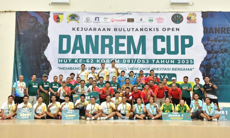 PONOROGO || Koranprogresif.id – Danrem 081/DSJ, Kolonel Arm Untoro Hariyanto memberikan ucapan selamat kepada para juara yang telah meraih prestasi pada kejuaraan bulu tangkis Danrem Cup. Ia menegaskan, keberhasilan itu tidak terlepas dari semangat dan kerja keras mereka selama ini.