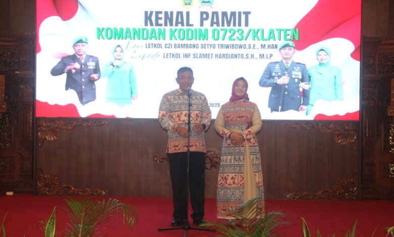 KLATEN || Koranprogresif.id, Bertempat di Pendopo Pemerintah Kabupaten Klaten, telah berlangsung acara Kenal Pamit Komandan Kodim 0723/Klaten Tahun 2025, dari pejabat lama Letkol Czi Bambang Setyo Triwibowo, S.E., M.Han. kepada pejabat baru Letkol Inf Slamet Hardianto, S.H., M.I.P. Acara ini diselenggarakan oleh Pemerintah Kabupaten Klaten sebagai wujud komunikasi dan sinergi antara TNI dan pemerintah daerah dalam mendukung stabilitas serta pembangunan di Kabupaten Klaten. Sabtu, (12/04/2025)