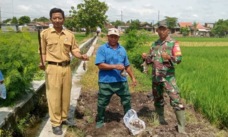 KLATEN – Dalam rangka mendukung program pemerintah di bidang ketahanan pangan serta membantu petani dalam mengendalikan serangan hama, Babinsa Desa Bentangan Koramil 22/Wonosari Kodim 0723/Klaten, Sertu Agus Triyono melaksanakan pendampingan kepada Kelompok Tani (Poktan) Agung Rejeki dalam kegiatan gropyokan tikus yang berlangsung di lahan pertanian Desa Bentangan Kecamatan Wonosari Kabupaten Klaten. (27/10/2025)