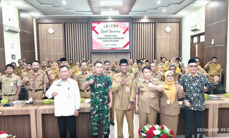 DEMAK || Koranprogresif.id – Kesbangpol Kabupaten Demak menggelar Rakor Satuan Tugas Pemberantasan Premanisme Kabupaten Demak Tahun 2025 di Ghradika Bina Praja Kabupaten Demak, Selasa (03/06/2025).