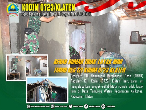 Klaten || Koranprogresif.id, Program TNI Manunggal Membangun Desa (TMMD) Reguler 121 Kodim 0723 Klaten baru-baru ini menyelesaikan proyek rehabilitasi rumah tidak layak huni di Desa Tambong Wetan, Kecamatan Kalikotes, Kabupaten Klaten. (12/8/2024)