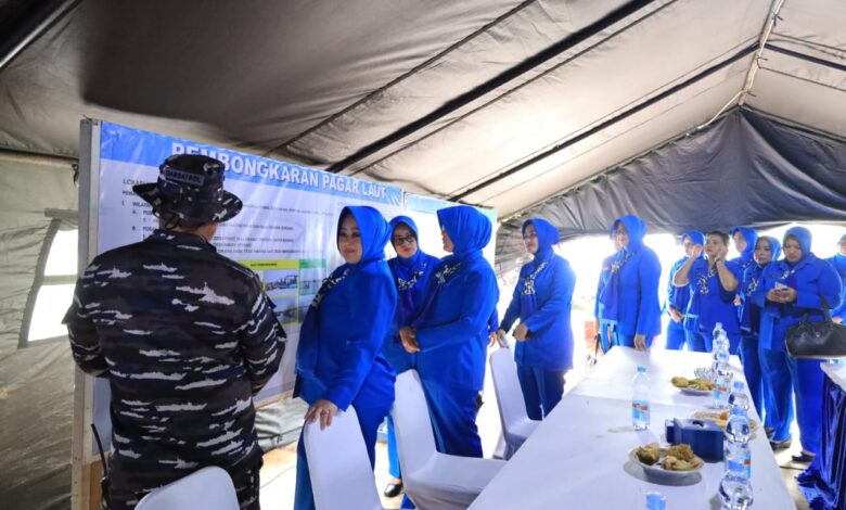 Jakarta || Koranprogresif.id, Ketua Koordinator Cabang (Korcab) III Daerah Jalasenastri Armada I Ny. Neneng Harry Indarto mendampingi Ketua Gabungan Jalasenastri Armada RI Ny. Kiki Denih Hendrata mengunjungi Posko Pembongkaran Pagar Laut sekaligus memberikan dukungan logistik kepada prajurit TNI Angkatan Laut dan masyarakat nelayan yang ikut terlibat pembongkaran pagar laut, dihadiri Ketua Daerah Jalasenastri Armada (DJA) I Ny. Yanti Yoos Suryono, bertempat di Posko Pembongkaran Pagar Laut, Tanjung Pasir, Tangerang, Rabu (29/01/2025).