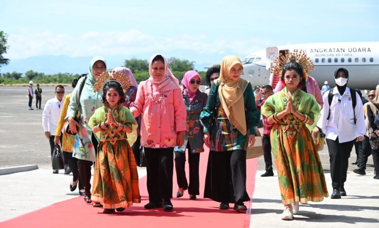 Ketua Pia Ardhya Garini Cabang 7 D/II Lanud Sultan Hasanuddin Sambut Kedatangan Ibu Negara Iriana Joko Widodo dan Ibu Wapres Wury Ma’ruf Amin