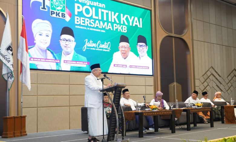 SURABAYA || Koranprogresif.id – Mantan Wakil Presiden Republik Indonesia yang kini menjabat sebagai Ketua Dewan Syuro Partai Kebangkitan Bangsa (PKB), Prof. Dr. KH. Ma’ruf Amin menghadiri acara Penguatan Politik Kiai Bersama PKB di Surabaya, Kamis (14 November 2024).