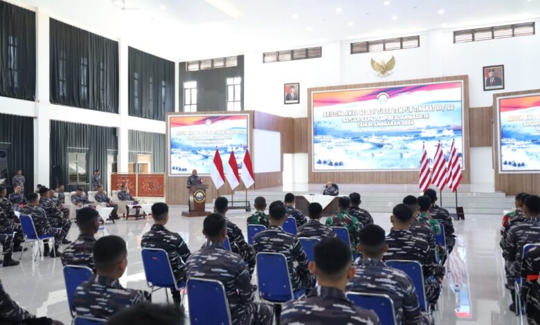 Sorong || Koranprogresif.id, Sesuai dengan dasar petunjuk latihan TNI AL tahun 2014 dan surat perintah Pangkoarmada III tahun 2024, Satuan kapal Amfibi (Satfib) Koarmada III menggelar latihan Geladi Tugas Tempur (Gelagaspur) Tingkat III atau L3 tahun anggaran 2024 yang diawali dengan Briefing Awal latihan oleh Inspektur Koarmada III Laksamana Pertama TNI Azil Sadagori Achmad mewakili Panglima Komando Armada (Pangkoarmada) III Laksamana Muda TNI Hersan, S.H., M.Si. di gedung serba guna (GSG) Maspardi Koarmada III Jl. Yos Sudarso Katapop,Salawati, Kabupaten Sorong Provinsi Papua Barat Daya. Rabu, (28/08/24)