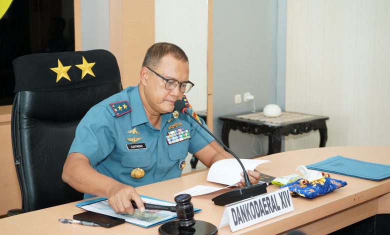 Sorong – Komandan Komando Daerah TNI Angkatan Laut (Dankodaeral) XIV, Laksamana Muda TNI Djatmoko, S.T., M.M., CHRMP., pimpin langsung pelaksanaan Rapat Staf dan Komando (Rasko) Kodaeral XIV Tahun 2026 yang digelar di Ruang Rapat Mako Kodaeral XIV, Jalan Bubara No. 01, Kelurahan Klaligi, Distrik Sorong Manoi, Kota Sorong, Papua Barat Daya, Kamis (19/02/2026).