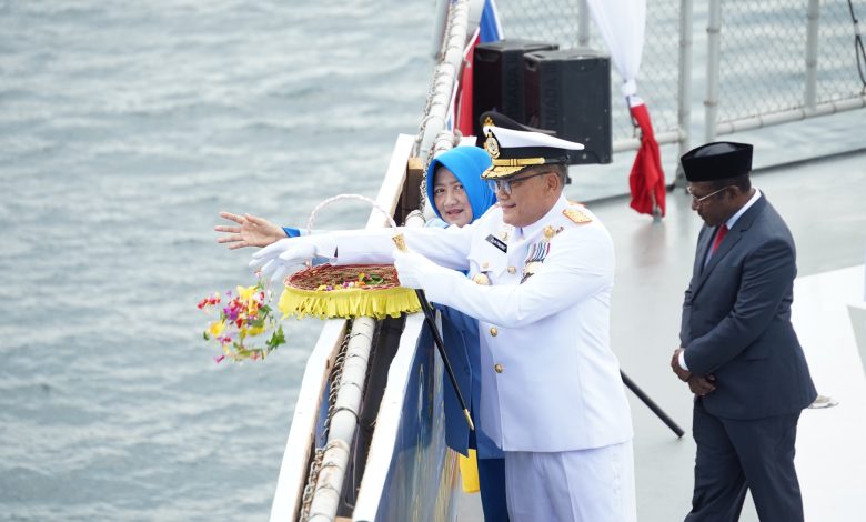 TNI AL. Sorong – Bertempat di Perairan Sorong Papua Barat Daya, Komando Daerah TNI Angkatan Laut XIV (Kodaeral XIV) menggelar upacara memperingati Hari Dharma Samudera tahun 2026 yang dilaksanakan di Geladak KRI Balongan – 908, yang dihadiri Komandan Komando Daerah TNI Angkatan Laut XIV (Komandan Kodaeral XIV), Laksamana Muda TNI Djatmoko, S.T., M.M., CHRMP, yang didampingi Ketua Daerah Kodaeral XIV Gabungan Jalasenastri Koarmada RI, Ny. Maulina Djatmoko. Kamis (15/01/2026).