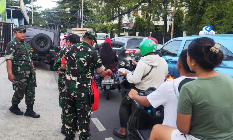 Kodim 0501/JP dan Koramil Jajarannya Bagikan Ratusan Takjil Secara Serentak Kepada Masyarakat Pengendara Motor, Ojek dan Pejalan Kaki