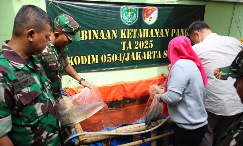 Jakarta || Koranprogresif.id, Dalam rangka Ketahan Pangan Kodim 0504 Jakarta Selatan memberdayaan lahan kosong dengan membuat Kolam dari terpal untuk budidaya Ikan lele, di lahan belakang Koramil 06/Setiabudi, Jakarta Selatan Jumat (13/6/2025).