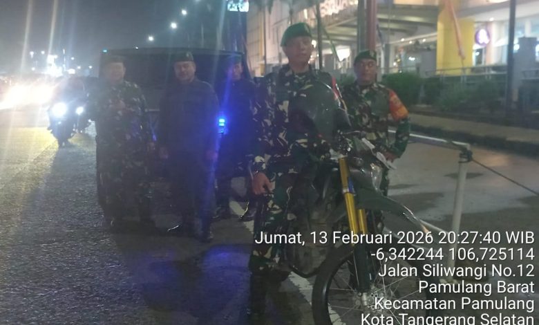 Tangerang – Demi menjaga kondusifitas Wilayah Kodim 0506/Tgr bersama Komduk melaksanakan Patroli /Siskamling Malam bersama diwilayah Teritorial Koramil 04/Ciledug dan Koramil 08/Pamulang Kodim 0506/Tgr, Jumat malam (13/02/2026).
