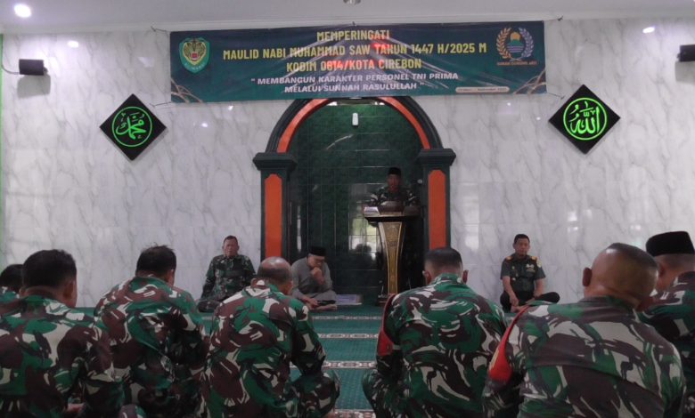 Kodim 0614/Kota Cirebon menggelar kegiatan Maulid Nabi Muhammad SAW 1447 H/2025 yang bertempat di Masjid Darul Mutaqin, komplek Makodim 0614/Kota Cirebon, Jalan Karangjalak – Sunyaragi, Kota Cirebon, Senin (8/9/2025).