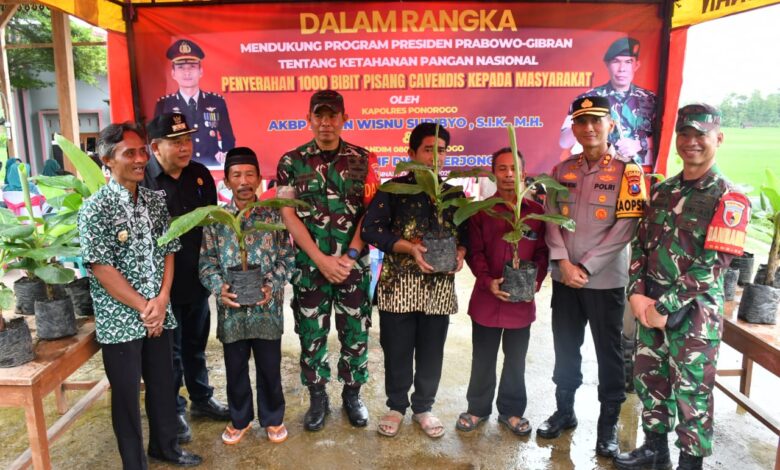 Tidak hanya berupa bantuan sosial saja, dalam kegiatan yang dihadiri langsung Komandan Kodim 0802/Ponorogo, Letkol Inf Dwi Soerjono dan Kapolres Ponorogo, AKBP Andin Wisnu Sudibyo, S.IK, MH. juga digelar kegiatan penyebaran benih ikan dan penanaman bibit pisang cavendish dalam rangka mendukung program ketahanan pangan nasional.
