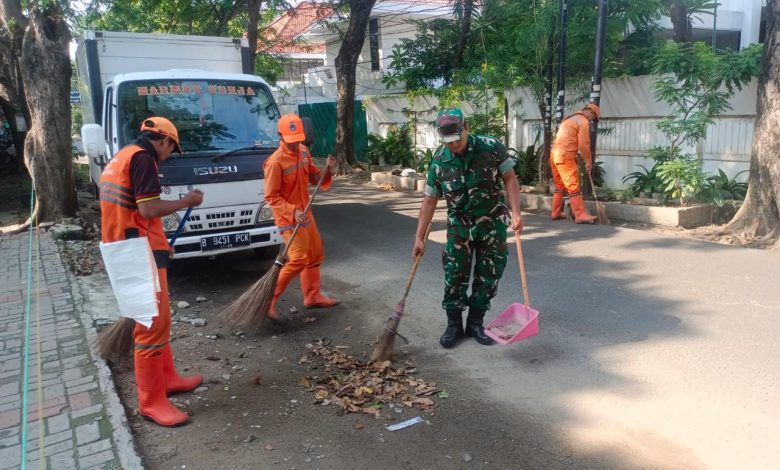 Kolaborasi Koramil 01/Tamansari dan PPSU Kelurahan Bersihkan Lingkungan