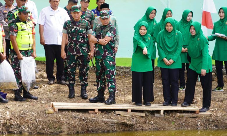 ”Hari ini Danrem langsung menaburkan benih ikan sebagai bentuk dukungan dan motivasi bagi kami dalam mengembangkan potensi lahan satuan,” ujar Dandim.