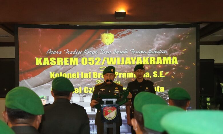 Tangerang || Koranprogresif.id, Tongkat estafet kepemimpinan Kepala Staf Korem 052/Wijayakrama resmi berpindah tangan. Kolonel Czi Chandra Adibrata kini menjabat sebagai Kasrem 052/Wkr, menggantikan Kolonel Inf Bram Pramudia, S.E., yang akan menempati posisi baru di Mabes TNI.
