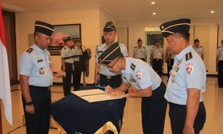 Jakarta || Panglima Komando Daerah TNI Angkatan Udara I (Pangkodau I) Marsekal Muda TNI Muzafar, S.Sos., M.M., memimpin upacara serah terima jabatan Asisten Komunikasi dan Elektronika (Askomlek) Kaskodau I dari pejabat lama Kolonel Lek Enggal Leksono, S.M., M.Han., kepada penggantinya Kolonel Lek Evik Merdiyana, S.I.P., S.T., M.M., yang berlangsung di ruang Lobi Makodau I, Rabu (3/12/25).