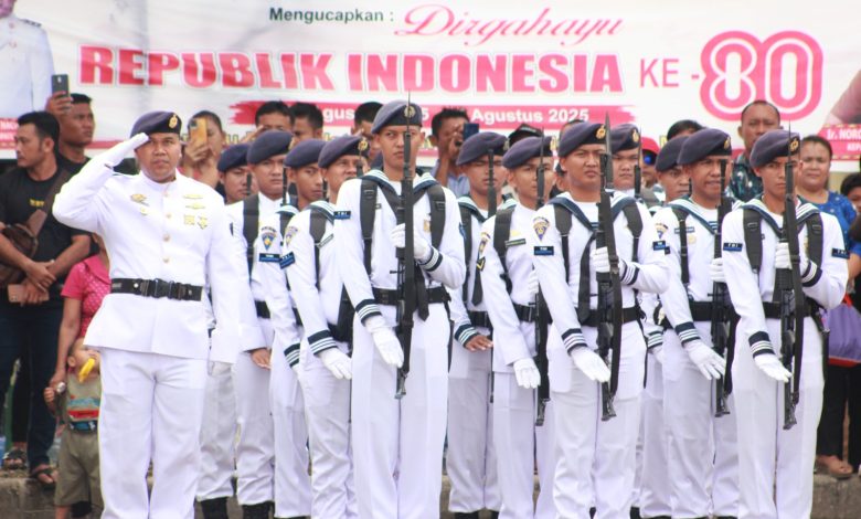 Komandan dan Prajurit Lanal Nias Ikuti Upacara Pengibaran Bendera Merah Putih Peringatan HUT Ke-80 Kemerdekaan Republik Indonesia di Jajaran Pulau Nias Tahun 2025