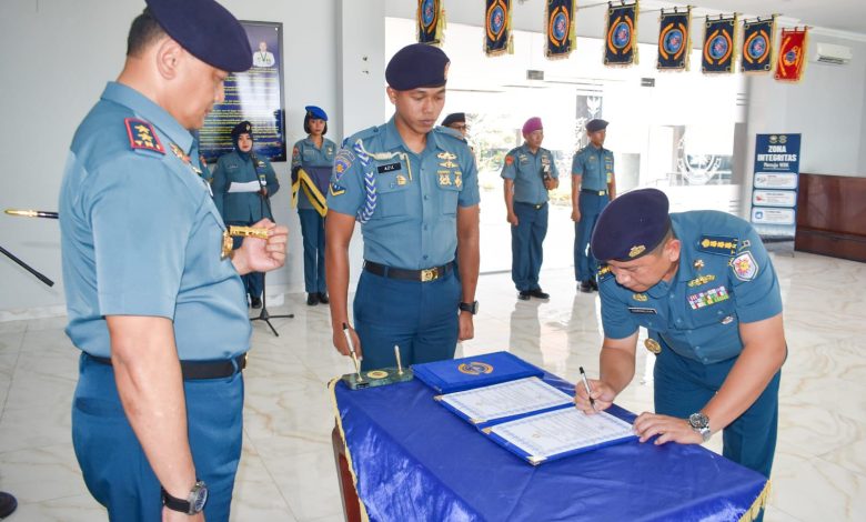 Laksamana Muda TNI Deni Septiana, S.I.P., M.A.P., memimpin acara Pengukuhan Jabatan Kepala Fasilitas Pemeliharaan dan Perbaikan (Kafasharkan) Sabang Kolonel Laut (T) Cornelius Hasiholan Sinaga, S.E., M.M., CRMP., bertempat di Lobby Gedung Utama Mako Kodaeral I, Jalan Serma Hanafiah No.01 Belawan, Sumatera Utara, Rabu (20/08/2025).