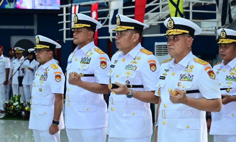 Komandan Komando Daerah TNI Angkatan Laut (Kodaeral) III, Laksamana Muda TNI Uki Prasetia, S.T., M.M., didampingi Ketua Daerah Kodaeral (KDK) III Gabungan Jalasenastri Koarmada RI, Ny. Hening Uki Prasetia menghadiri upacara Serah Terima Jabatan (Sertijab) sejumlah posisi strategis di lingkungan Komando Armada Republik Indonesia (Koarmada RI) yang digelar di Gedung Olahraga O.B. Syaaf, Markas Komando Armada RI, Jakarta Pusat, Kamis (26/2).