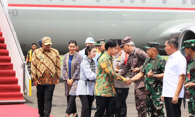 Belawan || Koranprogresif.id, Komandan Pangkalan Utama TNI Angkatan Laut I (Danlantamal I) Brigjen TNI (Mar) Jasiman Purba, SE, CHRMP., menyambut kedatangan Wakil Presiden Republik Indonesia Gibran Rakabuming Raka beserta Ibu Selvi Ananda serta sejumlah Pejabat dan Staf terkait, bertempat di Lanud Soewondo Medan, Sumatera Utara, Kamis (15/5/2025).