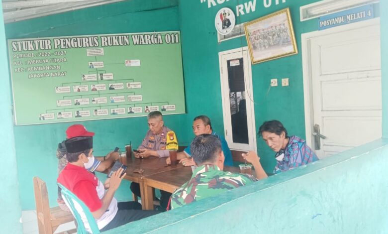 Komsos Babinsa Sertu Agus Toni Bersama Bhabinkamtibmas Meruya Utara Bahas Situasi Keamanan Wilayah
